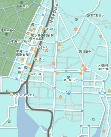 マークが、診療所の位置です。マウスを合わせると医院名がマウスの下に